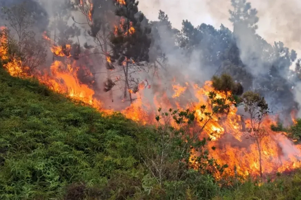 Caio Ramos Helicóptero Arcanjo-03 foi empenhado na ocorrência para fazer o transporte de água. Bombeiros também atuaram por