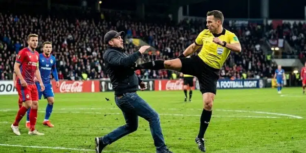 Árbitro surpreende e aplica golpe de karatê em homem que tentava agressão durante partida de futebol