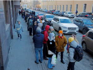 Residentes de Moscou e de outras cidades russas estão correndo para caixas eletrônicos e agências bancárias em