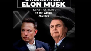Foto: Reprodução. Neste sábado (13), o ex-chefe de estado Jair Bolsonaro (PL) e Elon Musk,